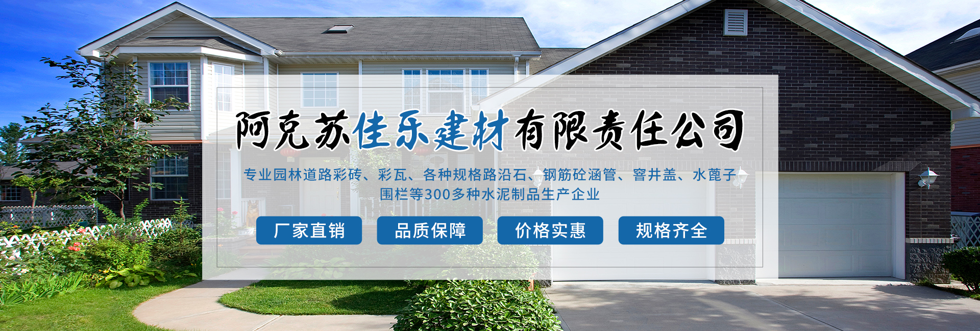 阿克蘇佳樂建材有限責(zé)任公司成立于2005年,是園林道路彩磚、彩瓦、各種規(guī)格路沿石、鋼筋砼涵管、窨井蓋、水蓖子、圍欄等300多種水泥制品生產(chǎn)企業(yè)。阿克蘇佳樂建材有限責(zé)任公司位于阿克蘇市塔南路13號(石油公司往南200米)。現(xiàn)公司在阿克蘇市、阿瓦提縣、烏什縣、拜城縣、輪臺縣、焉耆縣等地有分廠十余個,為地方城鄉(xiāng)建設(shè)添磚加瓦。 多年來,公司致力于設(shè)備的更新,新產(chǎn)品的研制,用更科學(xué)更美觀的產(chǎn)品順應(yīng)...